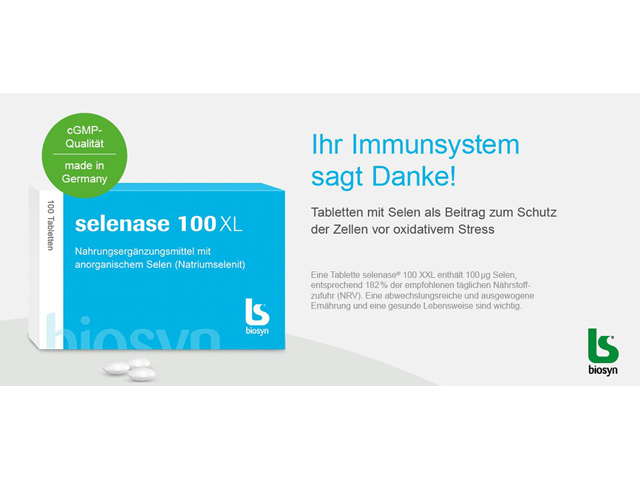 Die biosyn Arzneimittel GmbH Weltmarktführer bei hochdosierten Selen-Injektionen Die biosyn Arzneimittel GmbH ist ein Pharma- und Biotech-Unternehmen mit Sitz in Fellbach. Es ist spezialisiert auf Spurenelemente, Weltmarktführer bei hochdosierten Selen-Injektionen, Entwickler und Betreiber von zwei weltweit einmaligen GMP-Wirkstoff-Fertigungen und außerdem im Biotech-Bereich aktiv mit einem Glykoprotein, isoliert aus der Megathura crenulata, einer in Kalifornien vorkommenden Meeresschnecke.